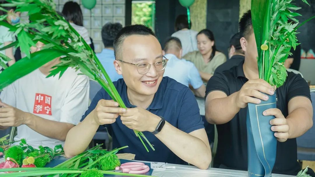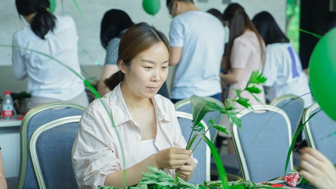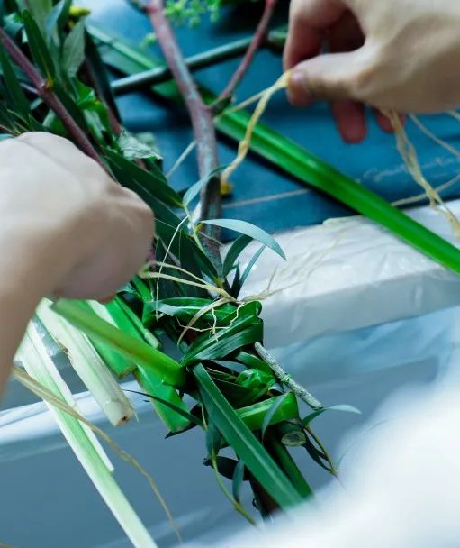 艾草的花語是和平,自古以來有著“清明插柳,端午插艾”的習(xí)俗,每當(dāng)端午節(jié)來臨的時候,人們會將艾草插在家中的房門以及屋梁之上,保佑家人安康。大家?guī)е鴮Χ宋缑袼撞煌囊娊猓浞职l(fā)揮動手能力,將艾草、菖蒲、小盼草等搭配設(shè)計(jì),制作成一份獨(dú)一無二的端午紀(jì)念品。