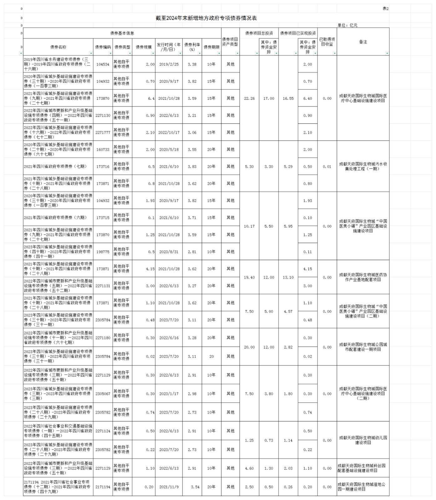 2024年成都天府國際生物城發(fā)展集團有限公司新增地方政府專項債券情況
