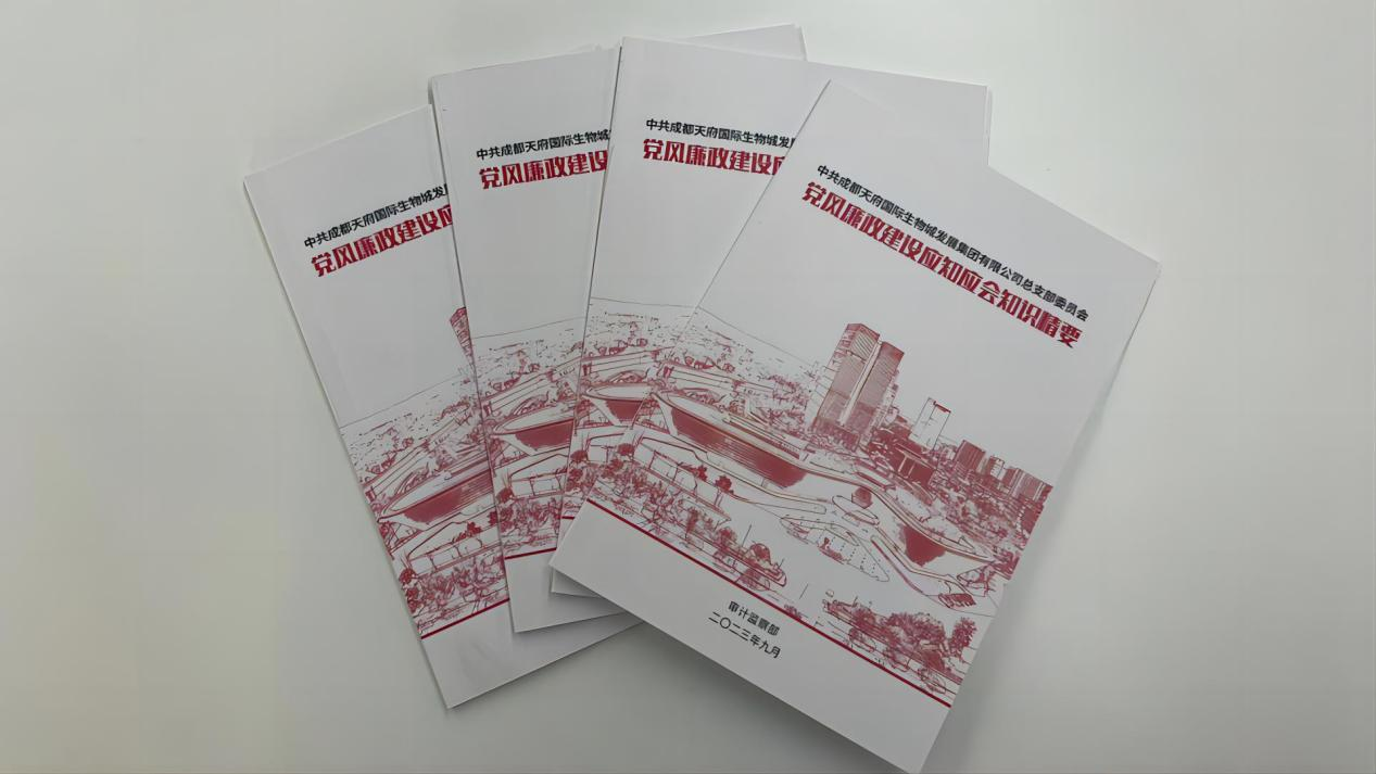 一項項清晰明了的要求、一本本制作精良的手冊、一條條精心編排的必學內容,聚焦打造忠誠干凈擔當?shù)母咚刭|員工隊伍,成都天府國際生物城發(fā)展集團有限公司(以下簡稱“生物城集團”)立足實際、創(chuàng)新形式、豐富載體,精心編印了《黨風廉政建設應知應會知識精要》手冊。
